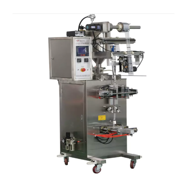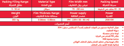 هذه الماكينة تقوم بكفاءة وبشكل أوتوماتيكي بتعبئة الأكياس ولحامها من جوانبها الأربعة، مع إمكانية طباعة التاريخ على المنتج النهائي وهي تمكنك من تعبة المواد السائلة وشبه السائلة داخل أكياس صغيرة، مثل الكاتشاب، المايونيز، الشامبو، مستحضرات التجميل، معقم الأيدي، وغيرها .. تأتي هذه الماكينة مع نظام كهروضوئي ذكي يمكنك من قطع الأكياس بناءً على العلامة المرجعية الموجودة على رول التغليف، أو بناءً على الطول المراد الذي يتم إدخالة على الشاشة