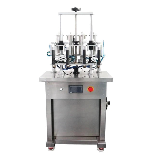 ماكينة تعبئة العطور شبه الأوتوماتيكية هذه مناسبة لملء المنتجات السائلة مثل محضرات الماء المختلفة والسوائل ذات الرغوة العالية والعطور وغيرها .. تحتوي الماكينة على 4 صمامات لتعبئة السوائل وسحب الهواء، تبلغ انتاجيتها حوالي 20 - 40 عبوة في الدقيقة. تعمل الماكينة بشكل اوتوماتيكي بمجرد وضع العبوة الفارغة أسفل صمام التعبئة
