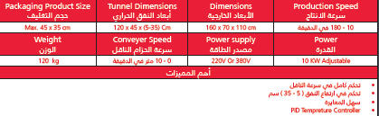 فرن التغليف الحراري هو آلة يتم من خلالها التغليف بالانقباض بحيث يقوم بتسخين الفيلم البلاستيكي حتى يتقلص ويتشكل بحسب شكل المنتج المعبأ.وهذا ما يجعل المنتجات المعبأة أكثر أمانًا ومقاومة للماء والغبار وأكثر جمالية. يتميز هذا الفرن بطريقة عمله من خال تسخين الغاف البلاستيكي، بحيث يكون البلاستيك مرنًا وينكمش. يمكن للبلاستيك تغليف المنتج وفقًا لشكل المنتج ونمطه. ويمكن تعديل درجة الحرارة في هذا الفرن وفقًا لخصائص الغاف البلاستيكي بحيث لا تتسبب في ذوبان البلاستيك. يستخدم هذا الفرن أيضًا على نطاق واسع في الصناعات الكبيرة مثل صناعات المشروبات والأغذية والشامبو وسوائل التنظيف وما إلى ذلك لأن هذا الفرن قادر على تغليف المنتجات بإنتاجية عالية